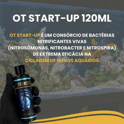 o OT Start-Up é um consórcio de bactérias nitrificantes vivas (nitrosômonas, nitrobacter e nitrospira) de extrema eficácia na ciclagem de novos aquários.