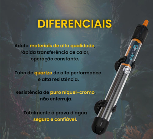 *ESTOQUE ATUALIZADO - NOVO MODELO OCEAN TECH AQUECEDOR TERMOSTATO PARA AQUÁRIOS WARMER X-6 100W*