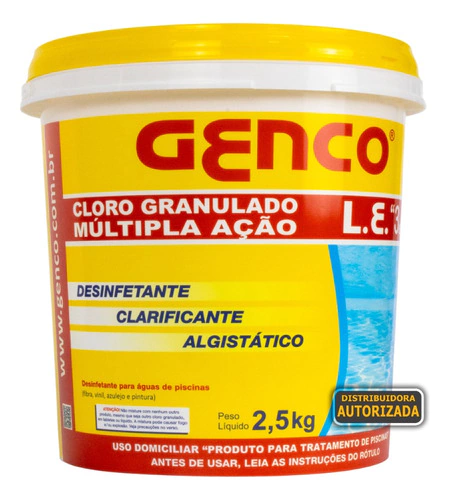 *ESTOQUE ATUALIZADO - BALDE DE CLORO GRANULADO 3 EM 1 MULTIPLA AÇÃO DE 2,5KG DA GENCO*