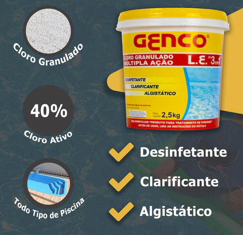 Balde de cloro granulado de múltipla ação 3 em 1 da Genco.