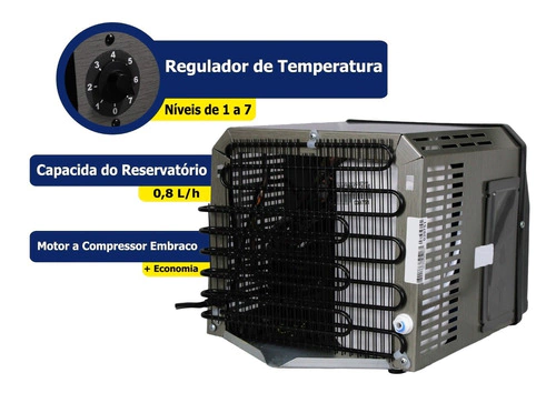Capacidade de refrigeração com ambiente a 32°C e a água a 27°C: 2,4 litros/hora
