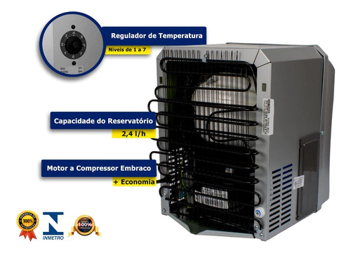 Capacidade de refrigeração com ambiente a 32°C e a água a 27°C: 2,4 litros/hora