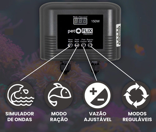 O destaque é o exclusivo modo de operação Wave Mode, que simula os movimentos naturais de um riacho, proporcionando bem-estar aos peixes. Com seu design elegante e acabamento premium, as Bombas Pet Flix Premium não apenas elevam o cuidado com os peixes, mas também agregam estilo a qualquer ambiente aquático.