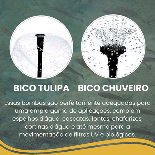 o Essas bombas são perfeitamente adequadas para uma ampla gama de aplicações, como em espelhos d'água, cascatas, fontes, chafarizes, cortinas d'água e até mesmo para a movimentação de filtros UV e biológicos.