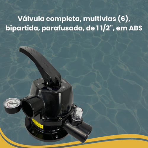 o Válvula completa, multivias (6), bipartida, parafusada, de 1 1/2'', em ABS.