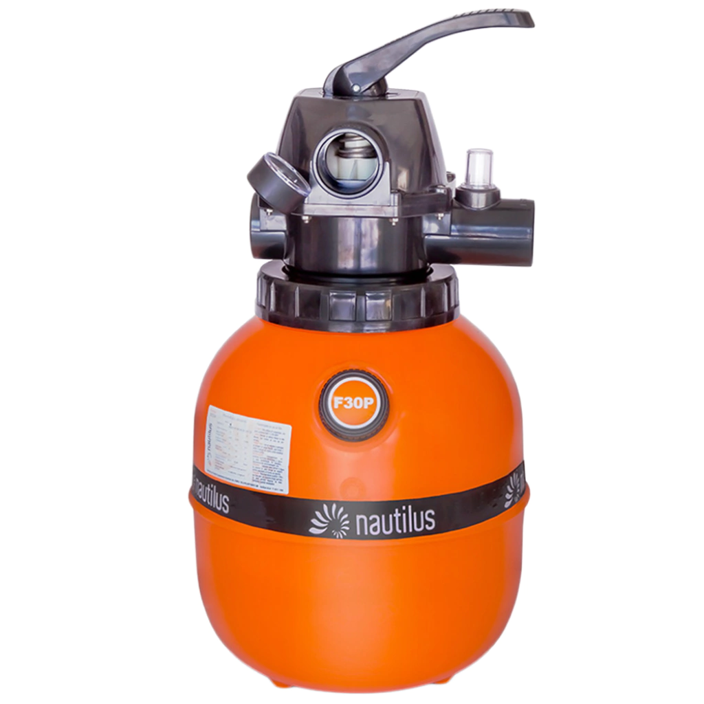 O filtro Nautilus para piscina F300P é um filtro de alta eficiência, ideal para a limpeza de piscinas de até 16.000 litros em caso de uso residencial, gerando qualidade e economia, não oferecendo riscos à saúde. Seu tanque é produzido com polietileno rotomoldado, em uma peça única, sem emendas, o que garante alta resistência a tensões residuais. Seu manuseio é simples, fácil e seguro através de válvula seletora multivias em ABS com 6(seis) posições (filtrar, lavar, drenar, recircular, pré-filtrar e fechado). Compatível com a motobomba Nautilus série NBF-0 com ¼ de CV.
