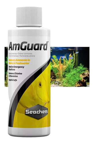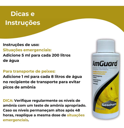 o É seguro para uso durante o pleno funcionamento do aquário e é ideal para o tratamento de situações de emergência. AmGuard é o removedor de amônia mais forte no mercado. Funciona em poucos minutos para desintoxicar a amônia livre e não degrada mesmo quarenta e oito horas depois. Isso é quase duas vezes a capacidade dos produtos dos concorrentes.