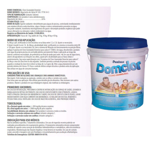 tags: cloro granulado, domclor, cloro para piscina, balde 10kg, hipoclorito de cálcio, dominus, cloro granulado 10kg, limpeza piscina, piscinas, cloro água piscina, hpcl piscina, hpcl domclor, cloro piscina, 65%, domclor, balde, balde de 10kg, 10 kg cloro