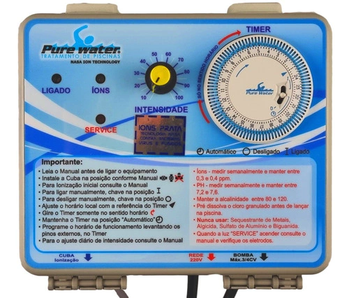 - Funciona sozinho ligando e desligando a bomba, liberando simultaneamente a quantidade ideal de íons.