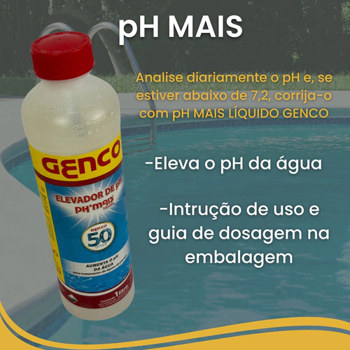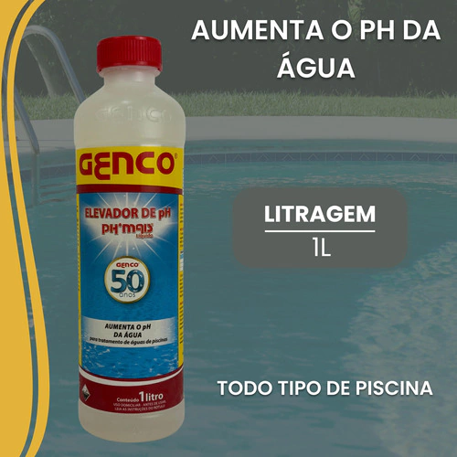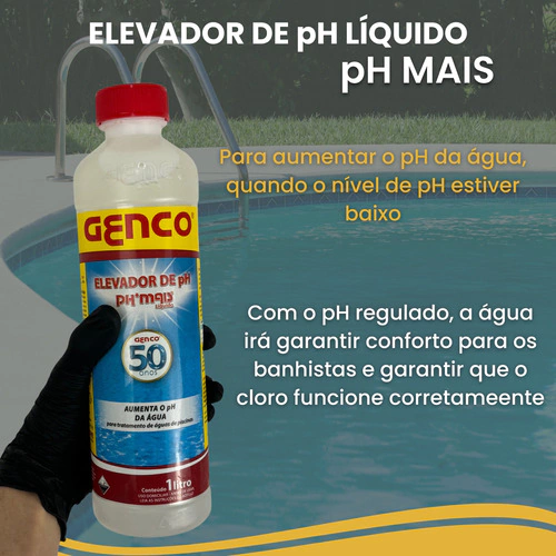 ESTOQUE ATUALIZADO - Elevador De Ph Para Piscinas Genco Ph Mais Líquido 1 Litro