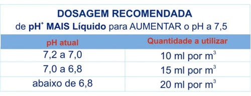 3) Para elevar o pH verifique a dosagem recomendada do produto na tabela abaixo: