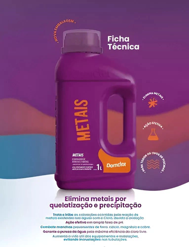 o O Eliminador de Metais Domclor é a solução perfeita para manter a saúde e a clareza da sua piscina. Este produto é ideal para sequestrar os metais existentes na água da piscina, removendo a coloração ocasionada pela reação do cloro com os metais presentes no sistema1. Além disso, ele também remove as manchas provocadas por esta reação.