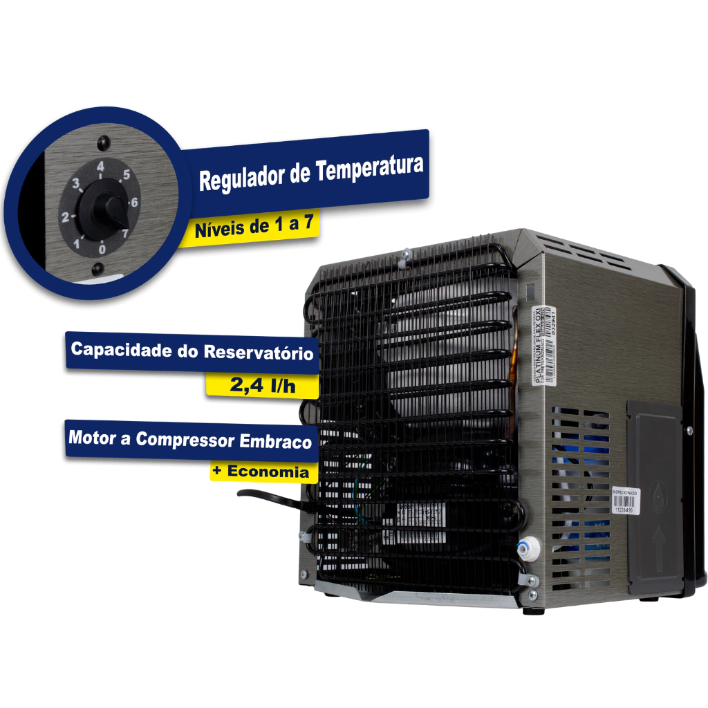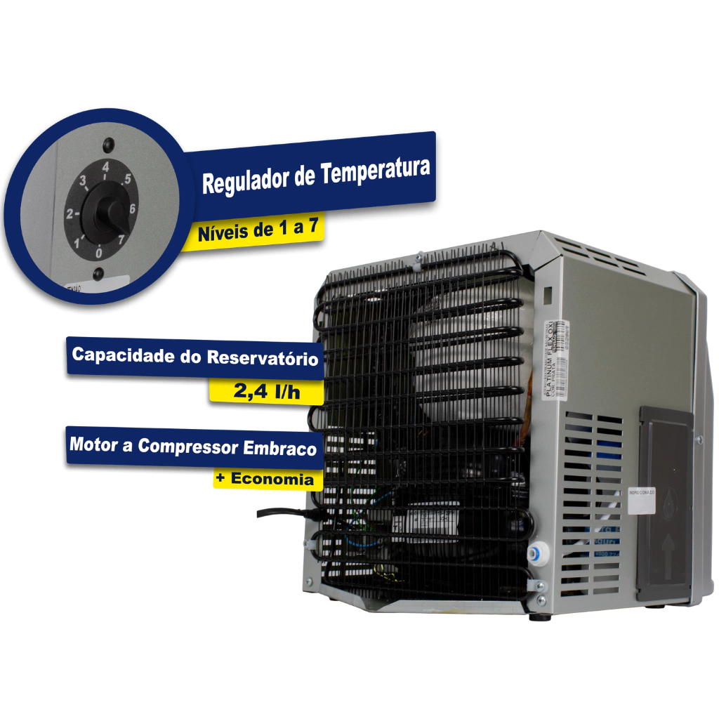 Os filtros Top Life Flexzon são equipados com um potente compressor que faz a água atingir temperatura de até 5°C.
