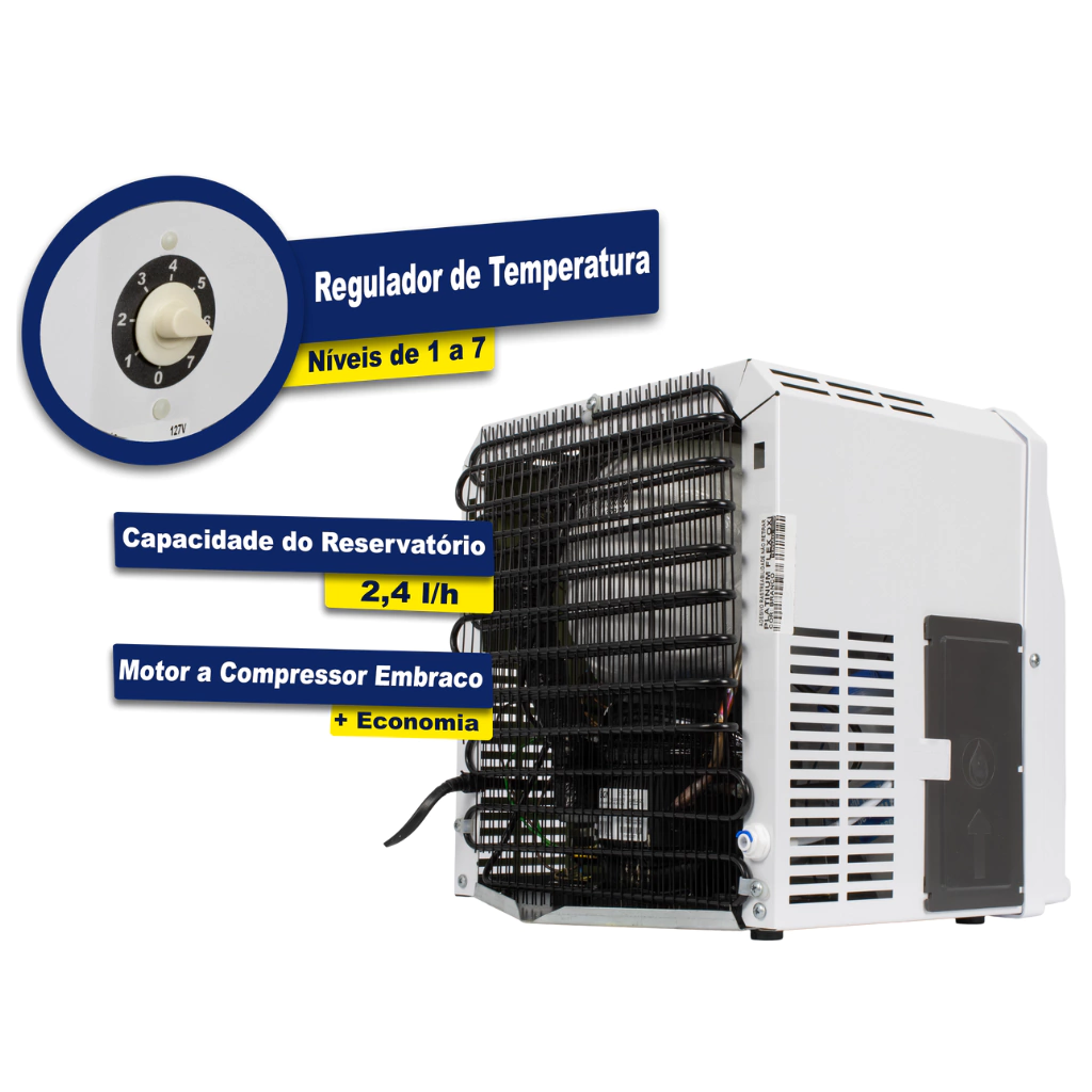 CAPACIDADE DE REFRIGERAÇÃO COM AMBIENTE A 32ºC E A ÁGUA A 27ºC: 2,4l/h