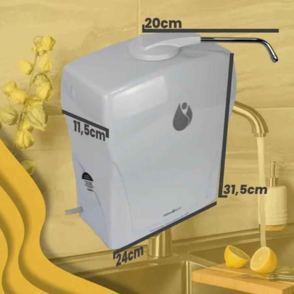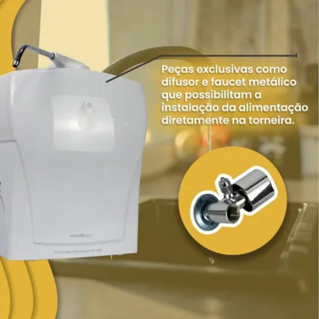 O HK 1000 possui peças exclusivas como difusor e faucet metálico que possibilitam a instalação da alimentação do aparelho diretamente na torneira, facilitando o uso do produto.