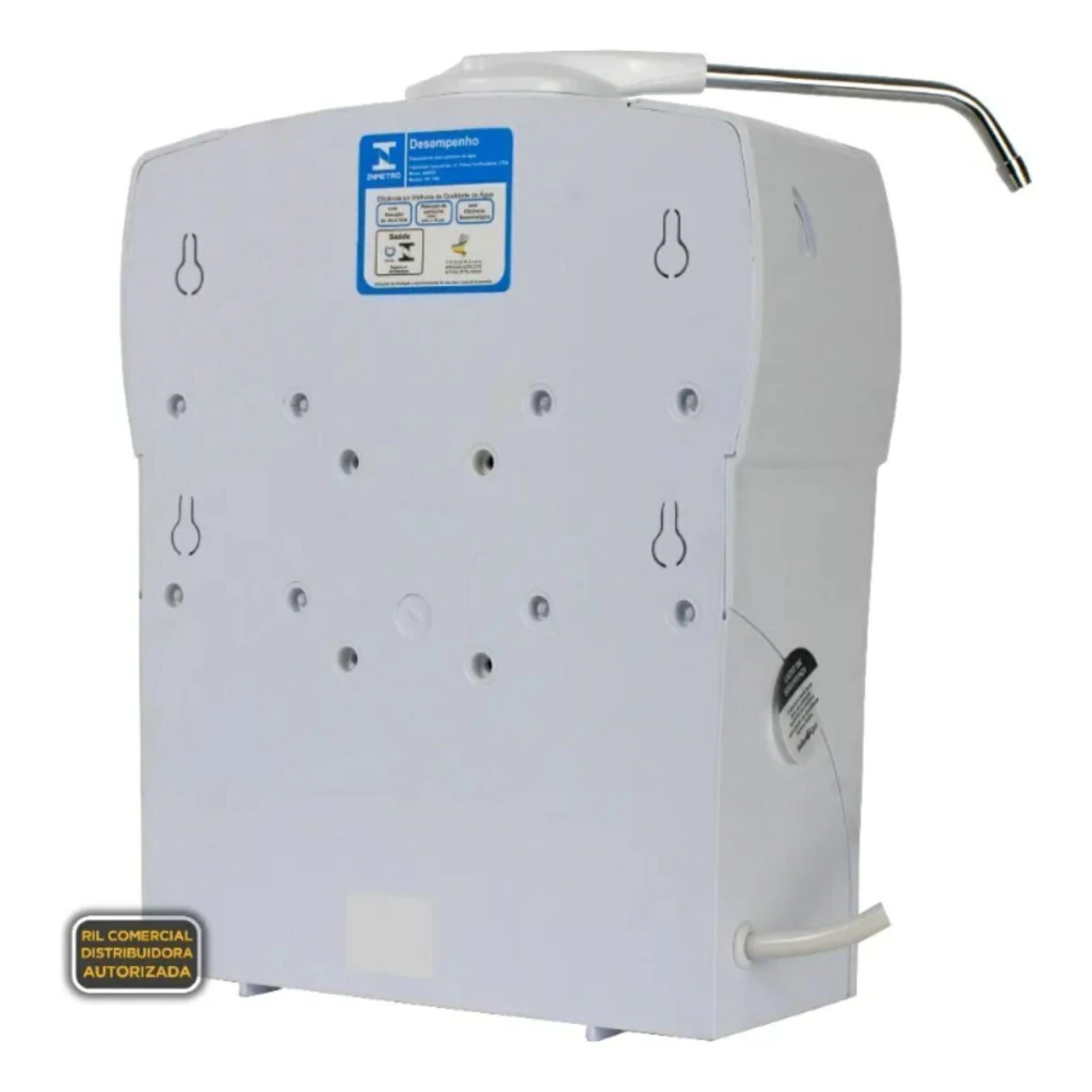 O produto pode ser posicionado sobre a pia ou fixado na parede com auxílio de suporte plástico.