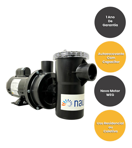 o Esse é um produto exclusivo Nautilus, no mercado é possível encontrar produtos similares visualmente, mas apenas a linha da Nautilus desenvolveu essa customização com a WEG. Os novos motores estão disponíveis para motobombas com potência de até 1,0 CV.