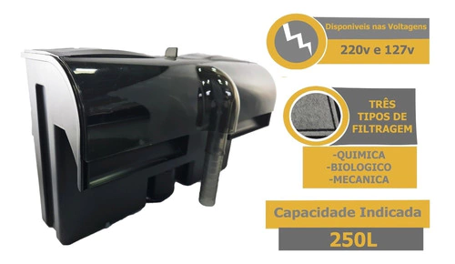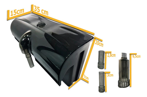 - Filtro do tipo Hang On, ocupa pouco espaço e pode ser pendurado no vidro traseiro ou lateral do aquário;
