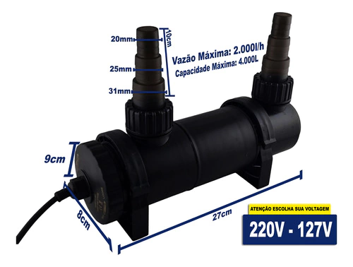 - Vazão Máxima: 2000l/h