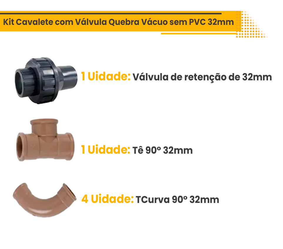 Kit Cavalete-com Válvula Quebra Vácuo Sem Pvc 32mmDescrição do Produto: