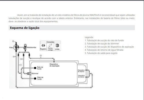 o Tamanho piscina (recirculação 10 horas): 24.000 Litros - Utilizando a NBE-0