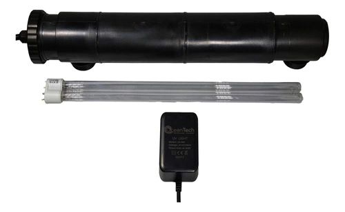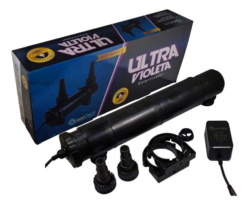 O Filtro UV Ocean Tech é um sistema de esterilização UV. Erradica eficazmente organismos prejudiciais à saúde dos peixes e elimina a aparência esverdeada da água, resultante do excesso de algas. O Filtro UV Ocean Tech é recomendado para uso em aquários de água doce e salgada, lagos e fontes. Pode-se conectá-lo a uma bomba submersa ou também a um filtro Canister.