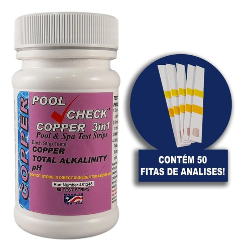 *ESTOQUE ATUALIZADO - KIT POOLCHECK COM 50 FITAS MEDIDOR DE COBRE 3 EM 1 PURE WATER