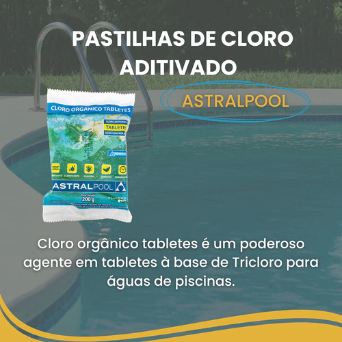 A Pastilha de Cloro Aditivado Clarificante Algicida 5x1 200g Astralpool é um produto multifuncional projetado para manter sua piscina limpa e segura.