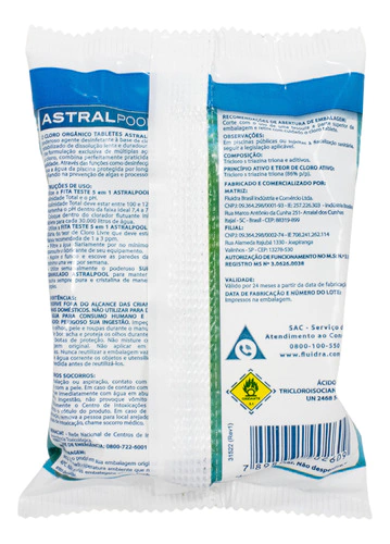 o Dosagem: 1 tablete/30 m³ (duração: 7 a 10 dias)