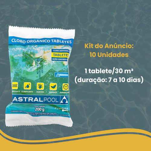 ESTOQUE ATUALIZADO - (Kit 10 Tablete Pastilhas De Cloro Orgânico 200g Astralpool)
