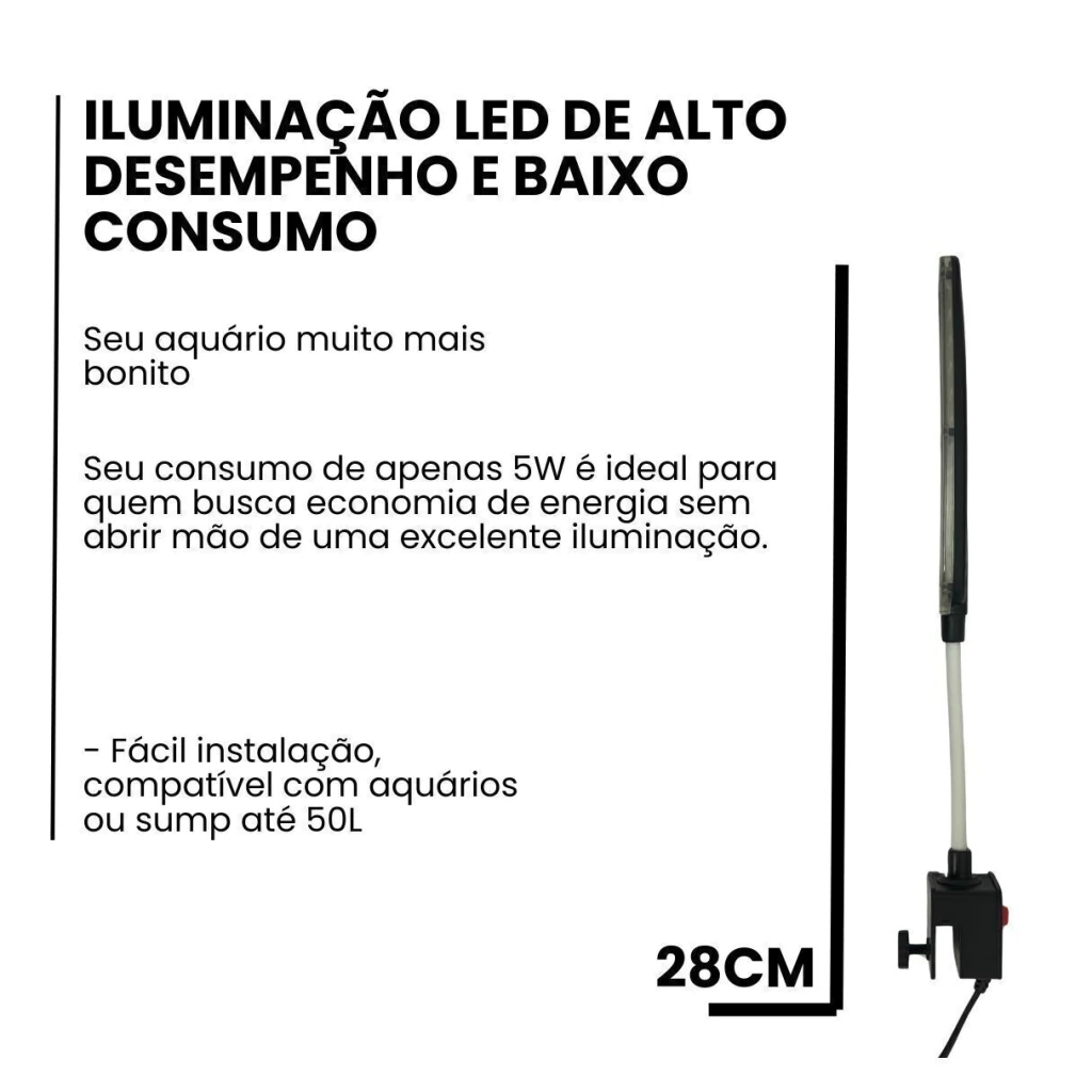 - Fácil instalação, compatível com aquários ou sump até 50L