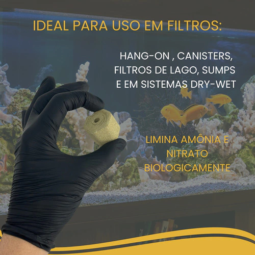 o Mídia biológica altamente porosa composta de microesferas cerâmicas, proporcionando uma excelente superfície para colonização de bactérias;