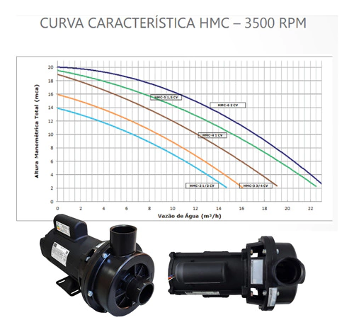 Motobomba Centrifuga HMC-5 Para Piscinas, Duchas, Cascatas e Hidromassagem 1,5cv - Com Capacitor - Bivolt (110v/220v) - Monofásico