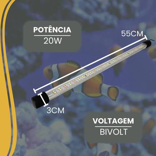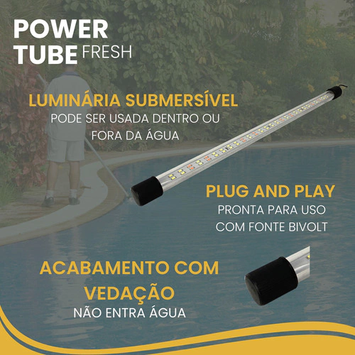 o A Luminária Submersa Power Tube da Ocean Tech é um produto de alta qualidade e eficiência, com um tamanho de 55cm, ideal para ser colocada tanto dentro quanto fora da água. Esta luminária é perfeita para aquários, fontes e lagos, proporcionando uma iluminação adequada e agradável.