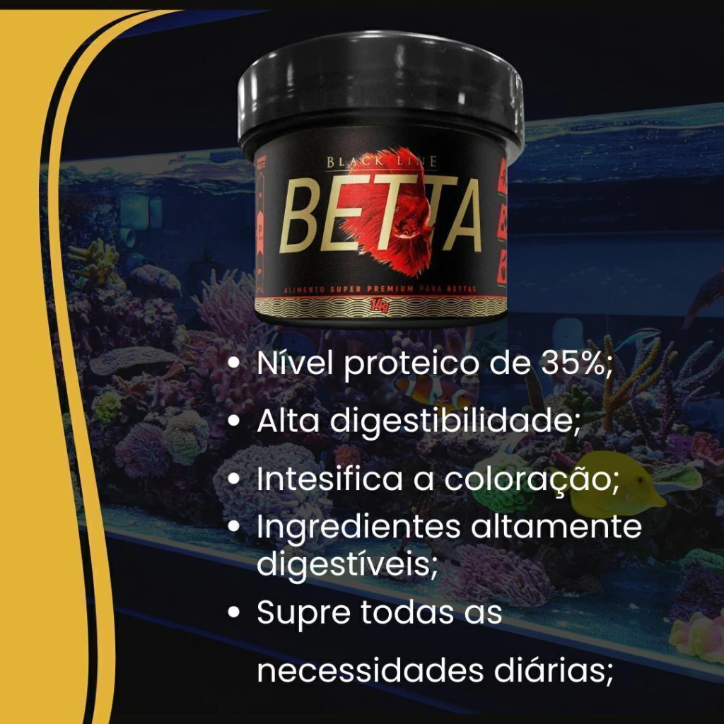 tags: ração betta black line poytara 14g, alimento premium peixe betta, poytara microgrânulos betta, betta reforço imunológico, realce cor peixes ornamentais
