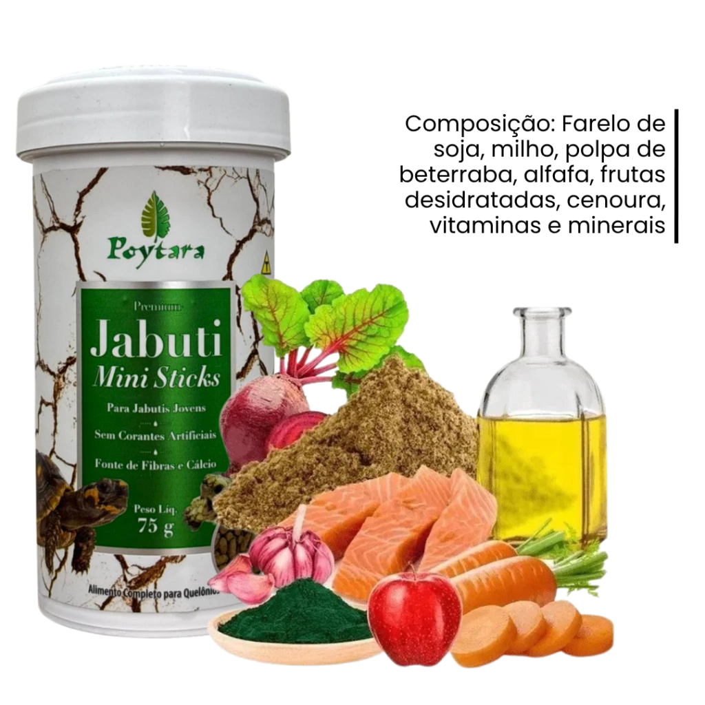 A ração Poytara Jabuti 75g é um alimento extrusado desenvolvido especialmente para atender às necessidades nutricionais dos jabutis e répteis herbívoros terrestres. Sua fórmula balanceada contém vegetais, frutas, fibras e vitaminas que promovem saúde digestiva, fortalecimento ósseo e vitalidade. Com alta palatabilidade, é facilmente aceita pelos animais, sendo ideal para o uso contínuo.