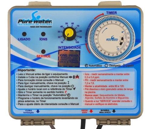 - Funciona sozinho ligando e desligando a bomba, liberando simultaneamente a quantidade ideal de íons.