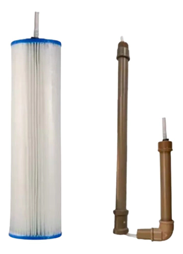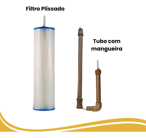 Os tubos são utilizaddos para que o filtro plissado fique mais próximo do centro da caixa d'água e se mantenha na posição vertical.