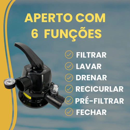 o Aperto com 6 funções: (filtrar, lavar, drenar, recircular, pré-filtrar e fechar).